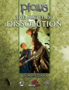 This mini-campaign picks up right where the adventures in Chapter 33 of Ptolus¸ Monte Cook's City by the Spire leave off. It complements the adventures in that book nicely¸ but it's not necessary to have played those adventures to run The Night of Dissolution . This title is suitable for 5e characters of roughly 4th level (potentially taking them up to 9th level or so)¸ or Cypher System characters of roughly second tier.