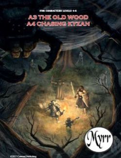 Cawood Publishing presents two 5E adventures in one! The evil necromancer Landis Kyzan has kidnapped some folk from the city of Wyld. A party of adventurers must track the wizard through the dangerous Old Wood. In the second adventure the party face Kyzan in the strange ghost town of Myrr.