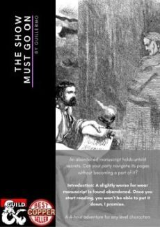 The Show Must Go On is a skill challenge one-shot centered around a split party scenario¸ based on skill choice¸ role play¸ and creativity. It can be run with a single DM and player¸ or a larger party of any level¸ and it can be modified for any setting.