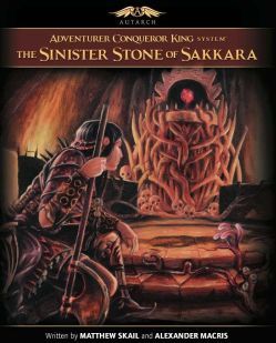 AX1: The Sinister Stone of Sakkara is a ready-to-play adventure presented for use with Adventurer Conqueror King System™ and other d20-based fantasy role-playing games. AX1 includes a two-level dungeon filled with chthonic horror along with a friendly stronghold from which your adventurers can explore the region. The Sinister Stone of Sakkara is the perfect introductory adventure for a campaign starting in ACKS's official setting but easy to adapt to your campaign setting of choice. Begin your rise from adventurer to king today!