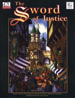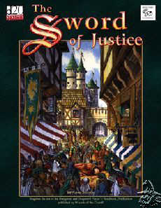 Welcome to Lenthinar¸ the most prosperous province of Tieros. Welcome to Om Amarna¸ and the annual Horse Festival. It is a time of celebration¸ drinking¸ haggling¸ and thanksgiving. Celebrate while you can¸ because soon the peace will be shattered. And in its wake will come danger¸ suspicion¸ and tragedy. In this first adventure in the cursed land of Tieros¸ beginning characters will be forced to work together in a race against time to find critical answers in a crowded¸ diverse¸ and paranoid city. Answers that will satisfy the Dark Guard and the Cult of Justice. Answers that will save their own necks from the gallows. Sword of Justice introduces Tieros¸ a land cursed by the acts of an ancient hero¸ bound by common fate¸ and diverse in culture and belief. In this adventure characters will become familiar with an exotic new PC race¸ the dangers of practicing magic in Tieros¸ the fanatical Cult of Justice who worships Law itself¸ and the ubiquitous Dark Guard¸ the military power the protects and enforces the peace. Will the characters survive their first adventure in Tieros¸ or will it claim their lives?