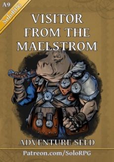Suprised townsfolk saw a growing shadow fall over the marketplace. Their first thoughts were of a storm brewing. Then the Peregrine Falcon broke through the clouds and crash-landed in the middle of the small town. Onlookers flew into a panic as the flying clockwork bird-ship nearly crushed the roof of the local tavern. However¸ the uproar was cut short when a figure emerged and fired a thunderous warning shot... A fun 5-page Spelljammer inspired adventure seed featuring Basil Starshot¸ captain of the Peregrine Falcon enlisting your aid to confront the pirates of the Crystal Eclipse and retrieve his captured crew. VISITOR FROM THE MAELSTROM has plenty of elements to use for an evening of group play¸ or using it with whatever solo roleplaying oracle/emulator you might prefer: Story setup First scene The Peregrine Falcon The Rock of Mirth Dwarven Starforge Plot suggestions Plenty of questions to answer during play SOLORPG PATREON I love creating all sorts of content for my own solo/GMless games: custom adventure locations¸ random tables¸ and adventure setups using a variety of solo/GMless rules with a focus on reusability. By providing my patrons access to the standalone content I create for my own games as well as custom content; I hope to share that original feeling of discovery and freedom with others in the solo roleplaying community! Cheerio! John SoloRPG Patreon