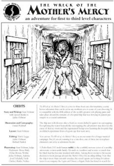The Wreck of the Mother's Mercy - a one-shot introductory fantasy adventure of inter-dimensional dread on the high seas for the fifth edition of the world's greatest roleplaying game - A galleon ferrying dozens of sick souls to coastal sanitarium vanishes without a trace. Some say she was struck by an iceberg. Others say sea raiders sunk her. But the truth is more terrible than either conjecture - something you will learn if you dare to board The Wreck of the Mother's Mercy and dive into the black depths beneath her. Featuring new items and locations that can be added to any campaign setting¸ this adventure is suitable for a party of three to six¸ level one to three adventurers. Plunder the galleon's wreckage and brave the cosmic horror that killed everyone aboard.