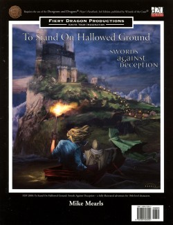 The first in our 'Bronze' line¸ To Stand on Hallowed Ground is a 32 page D20 fantasy supplement¸ featuring two haunting adventures. With a 'flip-book' double-cover style¸ retailers will have twice the fantasy excitement for their gaming shelves! Centering on a ghostly premise¸ the two thematically linked 16-page adventures will focus on what it's like to be dead (or undead) in a world of magic and mystery. Also features black & white counter sets¸ new monsters and magic¸ and ongoing support