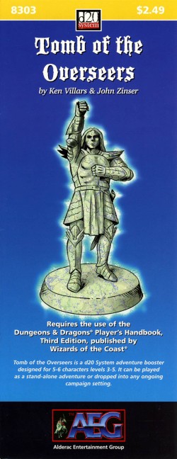 Requires the use of the Dungeons & Dragons Player's Handbook¸ Third Edition¸ published by Wizards of the Coast. Tomb of the Overseers is a d20 System adventure booster designed for 5-6 characters levels 3-5. It can be played as a stand-alone adventure or dropped into any ongoing campaign setting.