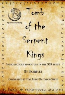 Tomb of the Serpent Kings is a basic old-school dungeon written by Skerples. Its purpose is to introduce the basics of dungeon crawlings to new players. The original module is free and can be downloaded here. This version is a conversion to 5th edition rules. It is a full conversion¸ with the maps¸ traps¸ magical items and monsters¸ all inside. You can pick it up and use it. This version is free and licensed under Creative Commons NC-BY-SA. All notes and comments are welcome. If you liked this conversion¸ consider checking out my original short adventure Tower of Tragedy ¸ a scary romantic crawl through a dryad witch's tower¸ fighting a curse!
