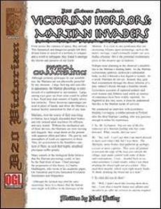 From across the vastness of space¸ they arrived. This fantastical and dangerous people left their distant home in search of a territory to conquer and a world to subjugate; they found it amongst the forests and pastures of our Earth. The Victorian Horrors: Martian Invaders supplement focuses on the Martian invasion of earth described by H.G. Wells. This supplement is a perfect addition to fans of the fans of Victorian Age genre D20 games. This sourcebook includes the physical characteristics¸ language and technology of the Martian Invaders. Also the game statistics for the Martian Invaders are included with their Martian Fighting Machines and personal weapons plus six adventure hooks to get your campaign started. This 7 page PDF is just the sort of thing needed for GMs to add depth to any great Victorian d20 Modern campaign setting and gaming session.