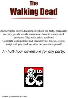 This short adventure is designed to be played without any additional material. All stat blocks¸ character information¸ maps¸ and other such things are already included in the document. No need for any books or character sheets! In half an hour¸ the human security force of United Brawnson Mines (the party) has to escape the mines¸ overrun by spooky zombies. And time is short on their hands: only 10 rounds to get out of the hellhole!
