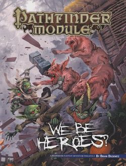 We Be Heroes? is an Pathfinder Playtest adventure for four 1st-level goblin characters that gives players and GMs alike a taste of the upcoming Second Edition of the Pathfinder Roleplaying Game. The adventure adds a twist to the familiar modules We Be Goblins!¸ We Be Goblins Too!¸ We Be Goblins Free!¸ and We B4 Goblins!¸ Paizo's popular series of Free RPG Day adventures!