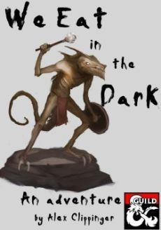 We Eat in the Dark is a deadly adventure for 3rd or 4th level characters. Navigate the caves of the Darkshard Abattoir¸ where light sources are muted and creatures hide invisibly in the dark.
