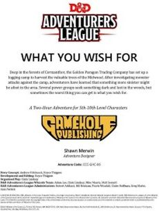 Deep in the forests of Cormanthor¸ the Golden Paragon Trading Company has set up a logging camp to harvest the valuable trees of the Midwood. After investigating monster attacks against the camp¸ adventurers have learned that something more sinister might be afoot in the area. Several power groups seek something dark and lost in the woods¸ but sometimes the worst thing you can get is what you wish for.