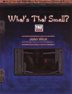 A D20 Adventure. A group of tired adventurers on their way home stumble across an abandoned halfling village and... what's that smell??? Written by John Wick (Legend of the Five Rings¸ 7th Sea¸ Orkworld)¸ What's That Smell? is a d20 scenario for mid-level adventurers. Smell is the first in a line of 'MultiModules' from Sell Out Ink (a division of Wicked Press). Each MultiModule can be played in multiple ways¸ making it a new adventure each time you play! What's That Smell? has full-sized maps¸ cut-out counters¸ reference graphics¸ and other tools to make the DM's job easy and fun. MultiModule: It's Never the Same Game Twice! ISBN: 0-9703013-1-6 Page Count: 32 Cover Price: $10.00 Release Date: July 9th