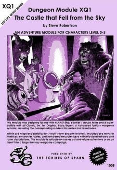 ...On the fringes of the realm¸ where civilization wanes and adventures begin¸ rumors are whispered of a castle that fell from the sky. Some say it has poisoned the land where it fell and nought but death can be within its walls. Some say creatures¸ foul and dangerous¸ have gathered at the dark fortress. But others¸ the treasure seekers and thieves who haunt the local taverns¸ scoff at such dire warnings and view them only as a thin ploy to keep adventurers from winning the vast treasure that surely waits within. To your ears have come these very rumors- and more: you have learned the location of the fallen sky-castle!