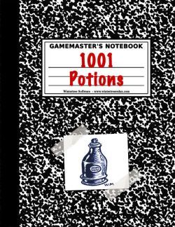 This is a collection of 1001 potion descriptions: their containers¸ their consistency¸ their color or colors¸ and even the type and accuracy of their labels. One assumes that the GM has already determined what potions are in the treasure. That is naturally specific to both the game system and the individual campaign. But descriptions for them? That's what you now have 1001 of¸ which should be enough to suit the needs of a typical game for a long time.