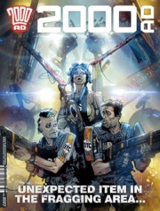 In this issue: Judge Dredd » Parental Guidance (part 1) Mega-City One¸ 2139 AD. Home to over 72 million citizens¸ this urban hell is situated along the east coast of post-apocalyptic North America. Unemployment is rife¸ poverty widespread¸ and crime is rampant. Tensions rest on a constant knife-edge¸ and only the zero-tolerance Judges - empowered to dispense instant justice - can stop total anarchy. Toughest of them all is JUDGE DREDD - he is the Law! Brink » Skeleton Life (part 15) The late 21st century¸ and through environmental catastrophe and industrial overload Earth has been reduced to a uninhabitable wasteland. Mankind finally evacuated the planet in 2072 and millions were housed in a number of deep-space Habitats. Bridget Kurtis¸ investigator with the Habitat Security Division¸ was involved in a sect-crime case that saw her partner murdered. Now¸ all communications with Mercury have been lost... Defoe » Diehards (part 12) 1671. It is five years since London was devastated by the Great Fire¸ the inferno caused by a comet passing over the capital¸ and from the ashes rose the undead¸ hungry for the flesh of the living. Protecting the populace is former Leveller Titus DEFOE¸ who led an elite squad of zombie hunters. Having defeated the evil magician Faust¸ who was controlling the stenches¸ he tried to retire - but the reeks have returned once more... Grey Area » Batch Recall (part 1) The late 21st century. Earth has a heavily armed defence network¸ and any ETs arriving on the planet are housed in the Exo Segregation Zone¸ known as the GREY AREA¸ which is policed by squads of Exo Transfer Control officers like Captain Adam Bulliet and his team - wife Birdy¸ linguist Kymn¸ weapons expert Feo¸ and alien transfer Resting Bitch Face. Confronted with all manner of off-world life forms¸ they have to keep the peace... Hunted » Furies (part 4) Nu Earth¸ just one planet among many caught up in a galactic war between the Norts and the Southers. Strategically vital¸ both sides are desperate to secure it but use of chemical weapons has rendered the atmosphere poisonous. A Souther general has turned traitor and sold information to the Norts¸ leading to the massacre of the Genetic Infantrymen. A wanted man¸ with many enemies out to kill him¸ he has to stay one step ahead...