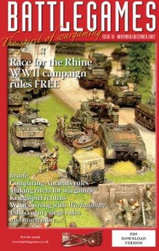 The PDF version is identical to the original printed version other than minor alterations to update subscription information and indicate the new format. The file is 144dpi¸ sufficient to enable you to 'zoom in' on pictures and achieve a pleasing print-out at home. Elements-based rules for Ancients : Bob Barnetson and the boys from Edmonton undertaking a major comparative review¸ including DBA ¸ Armati ¸ Vis Bellica ¸ Warmaster Ancients and Command & Colors Ancients. A river runs through it : I give a step-by-step photo-lesson in making simple but effective waterways for wargames. Asquith's way : Stuart Asquith discusses creating 'wargames in a box' as a way into new periods and projects. In my Wars of the Faltenian Succession series¸ I deliver part 1 of the siege rules¸ enabling you to use treachery¸ starvation¸ surprise and assault to capture enemy strongholds in fictitious or historical settings. Mike Siggins has so much to talk about in his Forward Observer column that I can't relate it all here¸ but suffice it to say that he's inspired. Barry Hilton concludes his Race for the Rhine WW2 campaign series¸ with a comprehensive set of campaign rules for use in conjunction with Flames of War. Kriegspiel rides again : Richard Clarke of TooFatLardies explains the enduring appeal of Kriegsspiel¸ the mother of all modern wargaming. To boldly go : our Fantasy & Sci-Fi Editor Roger Smith¸ just back from a bashing at the Warhammer Fantasy Grand Tourney¸ licks his wounds by explaining the ten things that annoy him most about the Warhammer rules. C S Grant's Table Top Teaser this time is "Siege train"¸ an exciting variant on the wagon train scenario that will test your abilities to the limit. The Recce section is overflowing with goodies. We were sent so many samples that I could have filled the magazine¸ so I've had to hold some over until next time. Reviews include DBMM and Warlord ancients rules¸ the new edition of The War Game ¸ War Torn Worlds 'green' scenery¸ Zvezda plastics¸ Italeri bunkers¸ Neil Thomas' Ancient & Medieval Wargaming ¸ Baccus colonials¸ Magister Militum Mongols¸ AIM 10mm ancients¸ Neil Litten's book Ramillies ¸ Angus Konstam's Salerno ¸ Rupert Matthew's book on Crécy ¸ Strategia e Tattica's Teutonic Knights¸ various publications from the Pike & Shot Society¸ Castaway Arts Colonials¸ Buck Surdu's Look Sarge¸ No Charts WW2 rules¸ and Warhammer Historical's Siege & Conquest. Phew! And¸ of course¸ a smile with Larry Leadhead and a competition with a prize you have just got to see to believe! Flames of War fans will be beating a path to our door! Finally¸ this issue sees the launch of our classified advertising section by popular demand from small traders who can't always afford larger ads. This PDF version is priced at 50% of the original printed version¸ making it affordable for gamers everywhere.