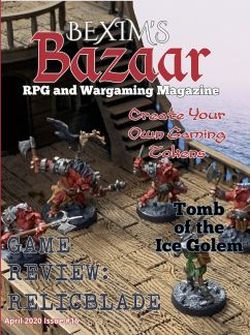 Bexim's Bazaar is a monthly gaming magazine dedicated to RPGs and wargames… and occasionally a boardgame of interest to RPG/wargamers. GMs and players will find plenty of resources such as magic item cards¸ random tables¸ mini-adventures¸ and articles related to gaming as well as printable props to hand out in game. This issue contains over 100 pages of gaming content for a variety of genres and games¸ and gamers are welcome to submit their own content for future issues (info on submitting is found inside each issue).