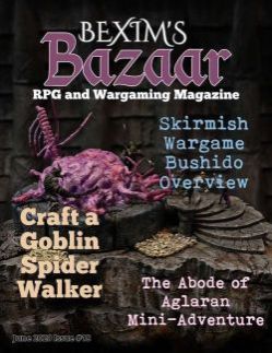 Bexim's Bazaar is a monthly gaming magazine dedicated to RPGs and wargames... and occasionally a boardgame of interest to RPG/wargamers. GMs and players will find plenty of resources such as magic item cards¸ random tables¸ mini-adventures¸ and articles related to gaming as well as printable props to hand out in game. This issue contains over 100 pages of gaming content for a variety of genres and games¸ and gamers are welcome to submit their own content for future issues (info on submitting is found inside each issue).