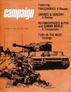 Campaign Magazin 91: (May-June 1979) Don Lowry Universell Magazine 🔗 Abenteuer Heft 46 Seiten EnglischEnglish 1979 Unterstütze Deinen lokalen Spieleladen vor Ort!Support your local dealer 🔗 DescriptionDescription PANZERKRIEG: A Review; SWORDS & SORCERY: A Review; METAMORPHOSIS ALPHA and GAMMA WORLD: A Comparison; FURY IN THE WEST: Strategy.