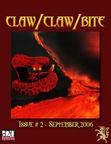 Claw/Claw/Bite! 2 Adam A. Thompson Justin B. Ellis S. D. Hilderbrand Universell Magazine 🔗 Spielhilfe PDF 16 Seiten EnglischEnglish 2008 Als PDF erhältlich bei DrivethruRPGAvailable as PDF at DrivethruRPG Unterstütze Deinen lokalen Spieleladen vor Ort!Support your local dealer 🔗