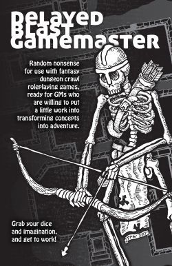 Welcome to the first issue of Delayed Blast Gamemaster¸ a work that would not exist without both the support of 600 project backers and the Kickstarter "Zine Quest" event that was run in February of 2019. When I first heard of Kickstarter's plans for Zine Quest¸ I just knew that I had to participate. After all¸ my very first work in roleplaying was in zines¸ and it is great to once again be working in such a small¸ limited format.