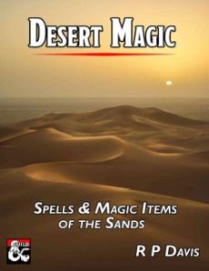 Desert Magic Spells & Magic Items of the Sands Featuring a bunch of updated magic items and spells¸ the experienced pen of Mithral-best-selling Guild author R P Davis brings you the perfect addition to your desert campaign! Thematic and instantly useful in virtually any campaign setting¸ your players will enjoy what's in this book. From 2002 to 2005¸ Dragon Magazine featured a series called The Far Corners of the World. Written by legendary designer James Jacobs¸ the series featured monsters¸ magic items¸ and spells related to specific areas of a fantasy world¸ from desert to glacier. This series of products updates the magic items and spells from The Far Corners of the World from the 3/3.5 Edition rules to the 5th Edition rules. For the different issues¸ click the pictures! About the Author R P Davis is the author of many things on the DMs Guild¸ and has contributed as a collaborator and editor on many others. He's been a tabletop gamer the entire time he's been sentient¸ and a role-playing addict for more than 30 years. In that time he's written countless things¸ from simple spell effects to D&D campaign worlds to complete role-playing games. You can find a complete list of his work here. Other books of conversions from R P Davis include: