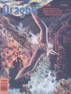 Dragon Magazine¸ Issue 124 TSR (Tactical Studies Rules) Universell Magazine 🔗 Magazin Heft 104 Seiten EnglischEnglish 1987 Unterstütze Deinen lokalen Spieleladen vor Ort!Support your local dealer 🔗 DescriptionDescription Skyships of the Forgotten Realms. Gliders and gliding in AD&D. Aerial adventuring. Aarakocra as characters. Ecology of the Gelatinous Cube. Backpacks. Escrima in Oriental Adventures. Secrets of Odeen the Arch-Mage.