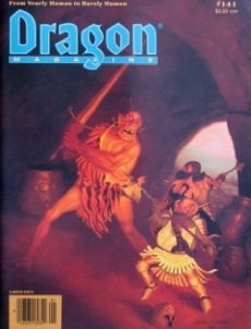 Dragon Magazine¸ Issue 141 TSR (Tactical Studies Rules) Universell Magazine 🔗 Magazin Heft 104 Seiten EnglischEnglish 1989 Unterstütze Deinen lokalen Spieleladen vor Ort!Support your local dealer 🔗 DescriptionDescription Humanoids (4 articles: Swamp Orc Assassin tribe; Shamans & witch doctors; Big humanoids; Humanoids as PCs); Master Menace and Professor (Marvel Super Heroes).