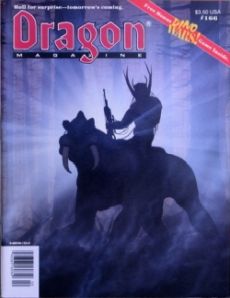 Dragon Magazine¸ Issue 166 TSR (Tactical Studies Rules) Universell Magazine 🔗 Magazin Heft 112 Seiten EnglischEnglish 1991 Unterstütze Deinen lokalen Spieleladen vor Ort!Support your local dealer 🔗 DescriptionDescription DINO WARS! - a bonus game; Cyberpunk RPG campaign; Tricks of the Trade (Battletech); A Clone of Your Own (GURPS AUTODUEL); The Voyage of the Princess Ark.
