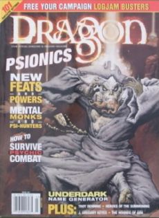 Up on a Soapbox - What the Heck is a Roleplaying Game?! - Part 3 (Gary Gygax); Mind Lords of Talaron; Hidden teachings of the Githzerai; The Splintered Mind - Rebels of the Scarlet Brotherhood; Races of the Underdark (names); Mythical places for your campaign; Dungeon Tiles; Logjam Busters; Psions & Psychic Warriors; Adventures of Volo: Lost Treasures of Cormyr¸ Part 4; Class Acts - Psi-Hunter; Imaskarcana: Faces of Magic; The Bestiary - Subterranean Scares.