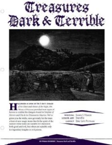 This EN5ider article has a host of new magical items to help you combat or embrace the terrors of the night! Nine new pieces of enchanted gear¸ from the collar of Cerberus to the crown of the devourer¸ the ghost ward lantern ¸ to skull liquer and more!