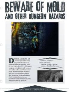 This issue of EN5ider introduces a range of dungeon hazards to harrow down a group of adventurers - euphoria-inducing bliss mold¸ spell-resistant elven mold¸ deceptive mirage blight¸ horrifying living walls¸ mire mold¸ putrid slime¸ and umber mold!