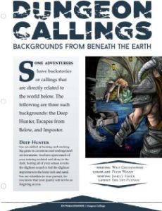 These new backgrounds are all linked to the depths of the world below: the Deep Hunter (skilled at tracking prey in underground environments)¸ Escapee From Below (someone who fled captivity for the surface)¸ and Imposter (complete with stolen identity).
