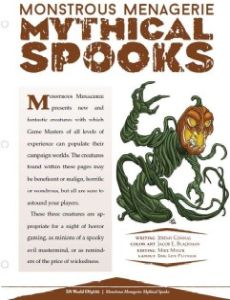 EN5ider 234: Monstrous Menagerie: Mythical Spooks (5e) Fantasy 🔗 EN Publishing Jacob E. Blackmon Jeremy Connal Universell Magazine 🔗 Magazin PDF¸ Original electronic EnglischEnglish 2019 Als PDF erhältlich bei DrivethruRPGAvailable as PDF at DrivethruRPG Unterstütze Deinen lokalen Spieleladen vor Ort!Support your local dealer 🔗 DescriptionDescription Meet the ghostly acheri¸ the cruel cuca¸ or the warped rabisu with these three new 5E monsters sure to liven up your Halloween!