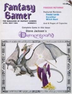 Fantasy Gamer - Magazine of Fantasy Gaming 5: The (Apr/May 1984) Steve Jackson Games Universell Magazine 🔗 Magazin Heft 44 Seiten EnglischEnglish 1984 Unterstütze Deinen lokalen Spieleladen vor Ort!Support your local dealer 🔗 DescriptionDescription Demonwand - War between wizards on an ever-changing magical landscape. Parent/Child Gaming. Death From the North - The Windigo. Murphy's Rules. Finieous Fingers.
