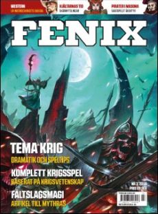 Kriget har kommit till Fenix. Du hittar ett komplett figurspel baserat på modern krigsvetenskap i tidningen¸ utöver material för att skapa dramatik och äventyr i rollspel där krig rasar. Det blir tips om hur du skaffar inspiration men också kring hur du undviker fallgropar civilister lätt faller i då de ska skriva om militärer. Hjältarnas Tid bjuder på ett stridssystem för skärmytslingar¸ Mythras på äventyrsuppslag och fältslagsmagi och Western visar hur Vilda Västern uppstod ur det Amerikanska Inbördeskriget! Det blir krigsspel¸ blippar¸ krönikor och en massa Pirater till Äventyr¸ terrängtips till Hjärnor och vinnarna av Fenix Awards 2018. Nyheter Åskfågeln - Kommande titlar och andra nyheter från spelförlaget bakom Fenix och spelen Ensamma Vargen¸ Freeway Warrior och Western. Skrômt - Om Bläckfisks tryckta speltestregler till ett kommande svenskt rollspel om nordisk folktro. Svartvikens rollspelspodds närvaro kan anas. Eloso förlag - Nyheter från en spelstudio som släpper nya spel på svenska i snabb takt. Här får du senaste nytt om kommande spel- och boksläpp. Rättelse - Äventyret Skräddaren från Mira till Coriolis skrevs av Axel Widén och illustrerades av Magnus Fallgren. Artiklar Bäst 2018 - Fenix läsare har utsett sina favoriter. Krigets dramatik: Hur du kan använda krig i rollspe l - Kriget har många ansikten¸ en del lättare att få in i spel än andra. Här får du tips och tankar om hur krigets olika faser kan återspeglas i ert spel. Skärmytslingar: En artikel till Hjältarnas Tid - Spela större strider utan att det tar en evighet eller känns förutbestämt. Militär verksamhet for dummies: en officer om vanliga misstag - Undvik de vanligaste fallgroparna när du använder krig i ert spel. Blippar¸ hexagoner & strategi: Introduktion till krigsspel - En introduktion till krigsspel¸ med tips på bra nybörjarspel. Joe Dever och krigen: soloäventyr där kriget är närvarande - Joe Devers soloäventyr har alla en relation till kriget och de hjältedåd som nu krävs av läsaren/spelaren. War¸ War never changes: Anna Erlandssons krönika - Genom spelen får vi spelare utforska olika aspekter av krig¸ hur de kan påverka oss och hur vi knyter an till historiska händelser. Vi får verktyg att manifestera och lösa konflikter. War¸ what is it good for? En artikel till Mythras - Pete Nash ger spelinspiration för militära kampanjer¸ avslutat med fummeltabell för stridsmagi. Ur skuggan: En artikel till Western - Vilda Västern föds ur Inbördeskriget. Konflikter med djupa rötter ger bra spelinspiration¸ på flera olika sätt. Krigsvetenskapligt krigsspel: Komplett figurspel av en officer - Claes Sundströms översiktliga och kompletta figurspel vilar på en modern krigsvetenskaplig grund. Att bygga Möllinge: Bygg terräng till figurspelet hjärnor - Konkreta och praktiska tips om hur du bygger terräng till Hjärnor. Ödesmagi i teori & praktik: En artikel till Ödesväktarn a - Spännande artikel till nytt svenskt fantasyrollspel av Mikael Bergström. I denna artikel får du veta mer om hur ödesmagi fungerar i spelvärlden. Är vi de onda? Humor på allvar när du spelar krig - Äventyrsuppslag inspirerat av en sketch värd att se och skratta åt. Fenix Junior Världsbok till Sagospelet Äventyr - Pirater i Masona är en världsbok i minatyr signerad Daniel Lehto. Butiksguiden Recensione r Odd Soot Ödesväktarna Guda