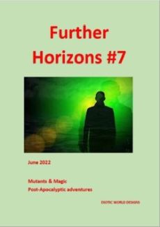 Further Horizons magazine #7 (the June 2022 issue) includes additional content for the Transdimensional Adventures RPG and compatible systems.