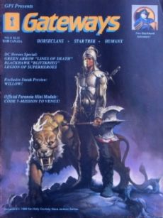 Gateways Magazine 08 GPI Universell Magazine 🔗 Magazin Heft 56 Seiten EnglischEnglish 1988 Unterstütze Deinen lokalen Spieleladen vor Ort!Support your local dealer 🔗 DescriptionDescription HORSECLANS; STAR TREK; HUMANX; DC Heroes Special: GREEN ARROW "LINES OF DEATH" - BLACKHAWK "BLITZKRIEG" - LEGION OF SUPERHEROES; Exclusive Sneak Preview: WILLOW!; Official Paranoia Mini Module: CODE 7- MISSION TO VENUS!