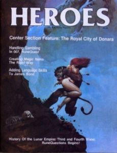 HEROES Role-Playing Magazine 1.5 Avalon Hill Universell Magazine 🔗 Magazin Heft 46 Seiten EnglischEnglish 1984 Unterstütze Deinen lokalen Spieleladen vor Ort!Support your local dealer 🔗 DescriptionDescription Special Feature: The Royal City of Donara. Gambling in James Bond 007 and Runequest. Creating magic items. Language skills in James Bond 007. History of the Lunar Empire - Third and Fourth Wane.