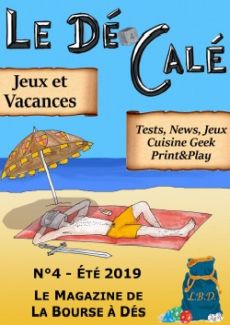 Voici le quatrième numéro du magazine de l'association La Bourse à Dés : le Dé Calé. Le thème de ce numéro ; les Vacances. Dans ce numéro¸ vous trouverez des actualités ludiques¸ des chroniques thématiques et qui donnent l'eau à la bouche¸ des tests de jeux de rôle et de société¸ plein d'infos ludiques intéressantes¸ plusieurs autres surprises et pléthore de Jeux qui ont envahi le Dossier Spécial !