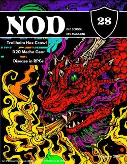 NOD opens 2016 with a new hex crawl through the Trollheim Mountains - trolls¸ giants¸ men spawned from the elements and the great city-state of Azsor and its king¸ the mighty Mogg. This issue also has a new class in honor of the Swiss¸ the Reislaufer¸ a new take on diseases in role playing games¸ some ideas on running campaigns in the primordial world of Atlantis and the second part of Luke DeGraw's series on running mecha using d20 rules.