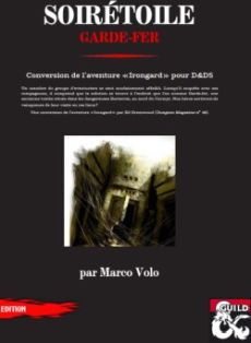 Voici la conversion pour D&D5 d'une aventure jadis parue dans Dungeon Magazine 18¸ écrite par Ed Greenwood et éditée par TSR. Elle est fournie sans carte ou description autre que les informations de conversion¸ comme l'exigent les lois sur le copyright. Le magazine est facilement achetable sur le net. Cette aventure se déroule dans les Rocterres dans le monde des Royaumes oubliés et elle est prévue pour des aventuriers de niveau 1. La présence d'un magicien est obligatoire. Le contenu fourni est en français. Garde-fer ( Irongard en VO) est la première de plusieurs publications prévues par l'auteur autour du village de Soirétoile au Cormyr¸ de ses Catacombes et des Rocterres. Tout retour est bon à prendre alors n'hésitez pas ! Here's a 5E conversion of an old Dungeon Magazine adventure called Irongard by Ed Greenwood. All the content of this product is written in French. It's the first of many products I will produce around Eveningstar and the Haunted Halls.