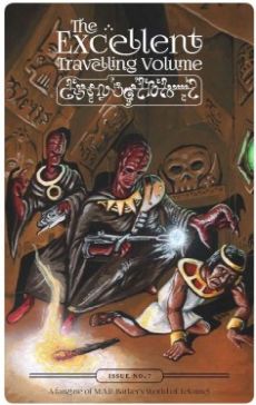 The Excellent Travelling Volume is a fanzine devoted to Empire of the Petal Throne and M.A.R. Barker's world of Tékumel. Issue 7 contains the following articles: Pé Chói and Páchi Léi Characters The Martial Artist (new class) The Revenant's Tomb (adventure) Demon Weapons The Pyramid of Chanmarbáyik (adventure) The Shunned Ones: The Vléshgayal Hrsh: Master of Time¸ Space¸ and Being Tékumel is a trademark of M.A.R. Barker and is used with permission of the Tékumel Foundation.