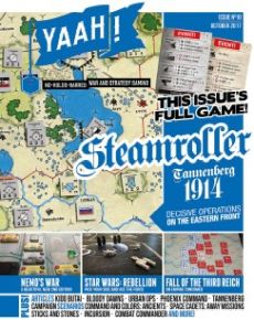There's no better way to recover from the long¸ hot summer than to dive into the fall's coolest gaming value - the next issue of Yaah! magazine. It's 78 sparkling (Get it?) pages of tabletop action and adventure¸ and you can pre-order your very own copy right here. As the days grow shorter¸ you're gonna need something to fill up all that extra time indoors - and this issue's game looks like a great place to start. Hermann Luttmann's Steamroller is a highly playable (and when we say 'highly playable" we mean "fun as hell")¸ tense¸ operational look at 1914's pivotal Tannenberg campaign. Command either the German 8th Army or the Russian 1st and 2nd Armies in the battle that decided the early course of the Great War on the Eastern Front. The game is the latest iteration of the system used in Hermann's earlier Race to the Sea 1914 ¸ (as well as Dead Reckoning ) with corps¸ divisions¸ and brigades traipsing around the wilderlands of East Prussia and northeastern Poland. If you "read it for the articles"¸ we've got you covered. Nick O'Neill visits a galaxy far¸ far away with his take on popular Star Wars: Rebellion ¸ while Deborah Malmud dives deep into VPG's gorgeous new 2nd edition of Nemo's War. Roger Leroux gets up close with Urban Ops ¸ newcomer Keith Beason scrutinizes The Fall of the Third Reich ¸ and John Burtt takes a look at Bloody Dawns. Brad Smith shows the true grit of some gamers playing a convention game of the hyper-complex oldie Phoenix Command ¸ and Col. Smitty provides some context for this issue's game with a historical overview of the Tannenberg campaign. It's not Yaah! without the scenarios¸ right? We've got the second part of Chuck Turnista's fascinating King Arthur scenarios for Command and Colors: Ancients ¸ an exclusive setup for Space Cadets: Away Missions by Tom Russell¸ a Sticks and Stones scenario pulled from Mark H. Walker's Dark War: Retribution from the designer himself¸ and a Combat Commander scenario for GMT fans.