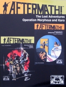 The Lost Adventures: Operation Morpheus and the Empire of Karo Fantasy Games Unlimited (FGU) Phillip McGregor William Pixley Aftermath 🔗 Abenteuer Softcover 86 Seiten EnglischEnglish 2008 Unterstütze Deinen lokalen Spieleladen vor Ort!Support your local dealer 🔗 DescriptionDescription A combined reprint of two hard-to-find modules for Aftermath.