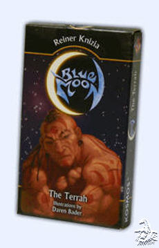 Blue Moon: The Terrah is a Peoples expansion for the Blue Moon basic game. By adding the Terrah to your Blue Moon collection¸ you gain a whole new deck with which to play this non-collectible customizable card game.The Terrah are warriors¸ farmers¸ craftsmen¸ and builders¸ all at once. With immense physical strength and a stolid determination¸ the Terrah make valuable allies and terrible enemies. Their characters have enormous power¸ particularly in Earth¸ but it would be a mistake to dismiss the Terrah as simplistic. Their ''Storm'' support cards can attract a dragon without even winning a fight¸ and they are not the only trick the Terrah have in their arsenal.This deck includes 30 new cards for your Blue Moon collection and is playable right out of the box against any other Blue Moon deck.