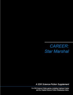 Evenin'¸ Anse¸" Shaughnessy boomed as she entered the saloon. She chose not to see the bartender hastily relocate something beneath the bar. "Evenin'¸ Marshal¸" he replied¸ glancing briefly to a group of scruffy men at a nearby table. Shaughnessy made her way over to them. Three of the men saw her as she approached and shifted uneasily in their chairs. But she was after their leader¸ Rayze Walstin¸ wanted for armed robbery and murder. Walstin appeared to ignore her as he took a long swig from a battered tankard. "Evenin'¸ Marshal ¸" he offered¸ mocking the bartender's greeting without meeting her gaze. "An' what can I do for ya tonight?" "You can come with me peacefully and without trouble¸" Shaughnessy replied. "Or not. Up to you." "Maybe... not! " He was fast¸ but Shaughnessy was ready. As he spun¸ revolver in hand¸ she grabbed him by the collar with her free hand while knocking his gun off-target with the barrel of her own quickly-drawn sawed-off shotgun before jamming the weapon hard into his ribs. "Like I said: up to you. Seeing as you chose the hard way¸ you'd best get moving before I decide to do something about that lifespan of yours." Space is full of frontiers¸ lonely outposts¸ and isolated areas where law and order have yet to take hold. Sometimes it's up to bold appointees to go in and apply the law by whatever means necessary. Such people are Star Marshals¸ trained to deal with lawlessness and crime in whatever manner they see fit until civilization can catch up. Now Cepheus Engine and Original Science Fiction Roleplaying Game players can take on the role of one of these unsung heroes of the starlanes. Career: Star Marshal offers a brief discussion of the Marshals' role and their enforcement styles¸ familiar character generation/lifepath tables¸ an overview of the starship of choice among Marshals¸ and even a new piece of equipment to deal with the rowdier criminals. Career: Star Marshal. The long arm of the law just got a lot longer.
