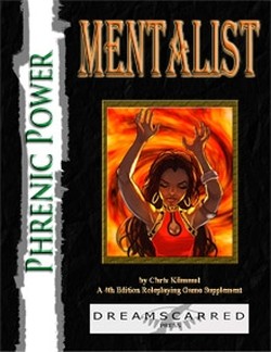 Where some heroes draw their power from the magical energy that permeates the cosmos¸ the gods¸ or even from intense physical training¸ there are those that draw on the strength of their psyche and emotions. The phrenic power source represents the power inherent in all sentient beings¸ the ability to draw forth the spark of life¸ that inner fire which gives strength to convictions. In some¸ it takes the form ofextreme dedication¸ unusual courage¸ or an unbreakable discipline. But in others¸ it takes on physical form. Their font of power is so great that they can manipulate the world around them by using it. This is the phrenic power source. " Tap into the phrenic power source with the new Mentalist class from Dreamscarred Press¸ your source for new psionic material. Designed for 4E¸ the mentalist is a controller class¸ using phrenic power to impair and harm your enemies. With over 90 devotions covering levels 1-30¸ thirty new feats¸ a new implement - the psicrystal¸ and three paragon paths¸ and 25 pages of material¸ Phrenic Power: Mentalist offers a ready-to-use class for your 4E games.