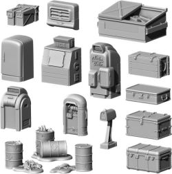 The ruins of Boston still hold treasures for those willing to go looking and able to survive the urban decay left behind after the bombs fell. From refrigerators to trash bins to ice boxes and dumpsters¸ an intrepid survivor might find weapons¸ ammo¸ chems or even (mostly) edible foodstuff hidden within this array of street furniture.