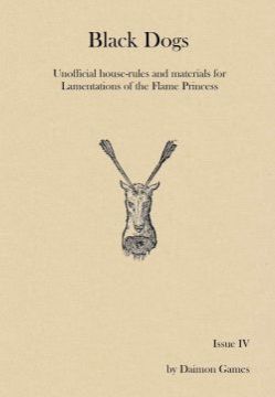 Black Dogs is a dark fantasy collection of house-rules¸ materials¸ adventures¸ monsters¸ and together a toolbox to generate new content for OSR systems¸ particularly focused on Lamentations of the Flame Princess. Black Dogs shares a common set of rules and aesthetics with Lamentations¸ but it has its distinct flavor. Whenever a rule is not found (or not presented yet) in the Black Dogs 'zine¸ just use the default from Lamentations or whatever OSR system you're running.